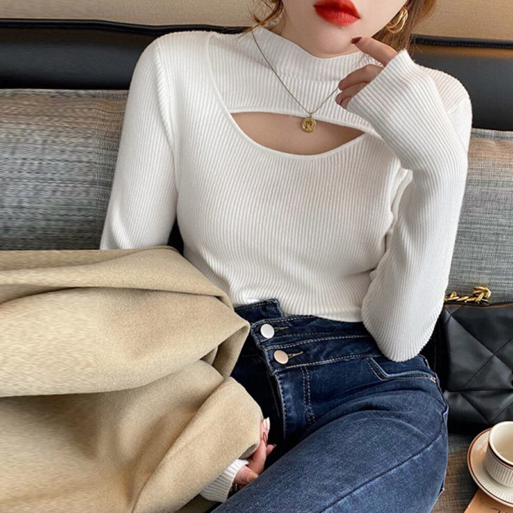 レディース フロントオープン ニットウェア 長袖 おしゃれ ニットソー 着やせ セクシープルオーバー オフィスカジュアル ニットインナー通勤 韓国風トップス大人 きれいめニット秋冬