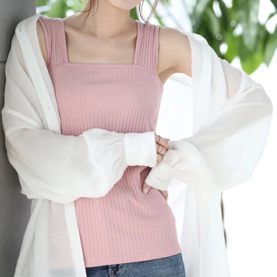 キャミブラ紐隠せるリブ素材 タンクトップ スクエアネック 6色