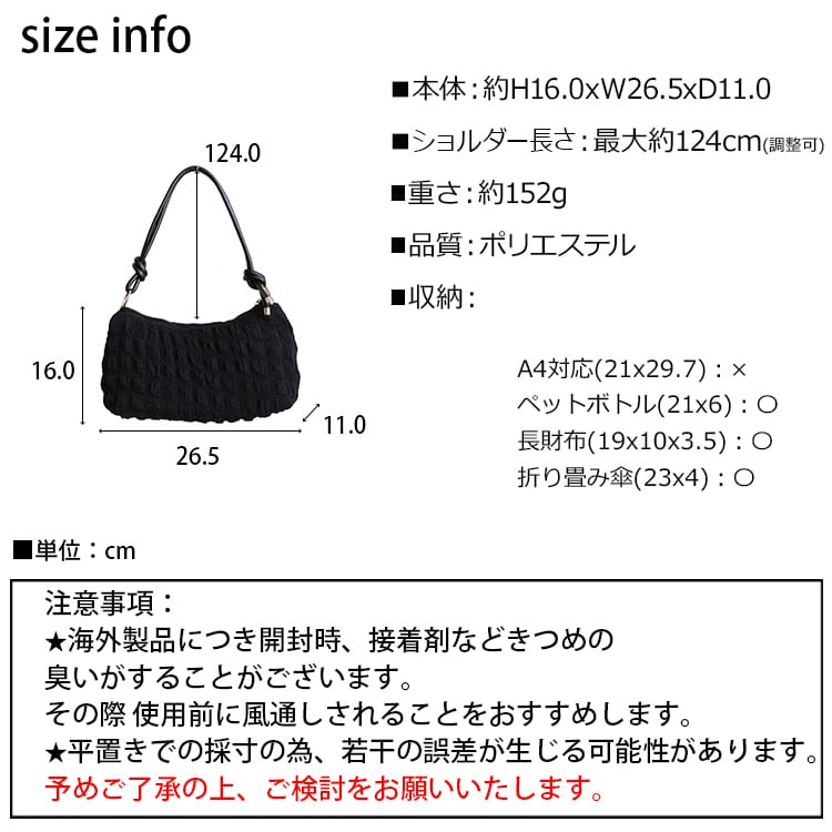 縦:約16cm 幅:約26.5cm マチ:約11cm ショルダー長さ:最大約124cm(調整可)