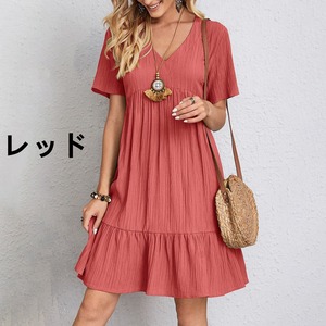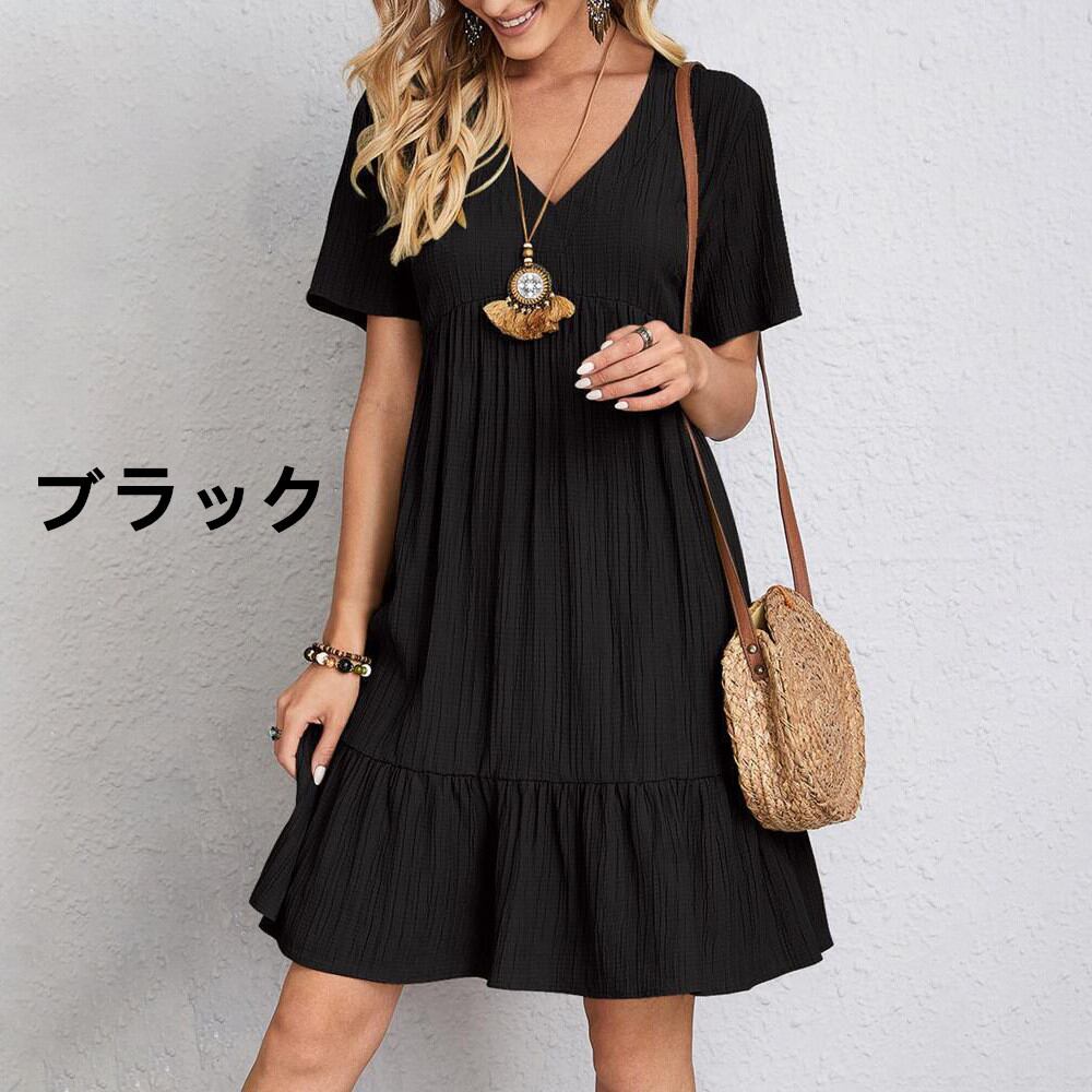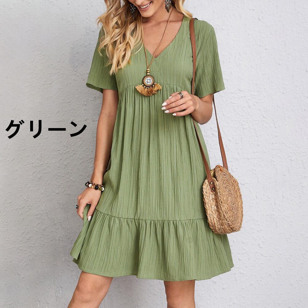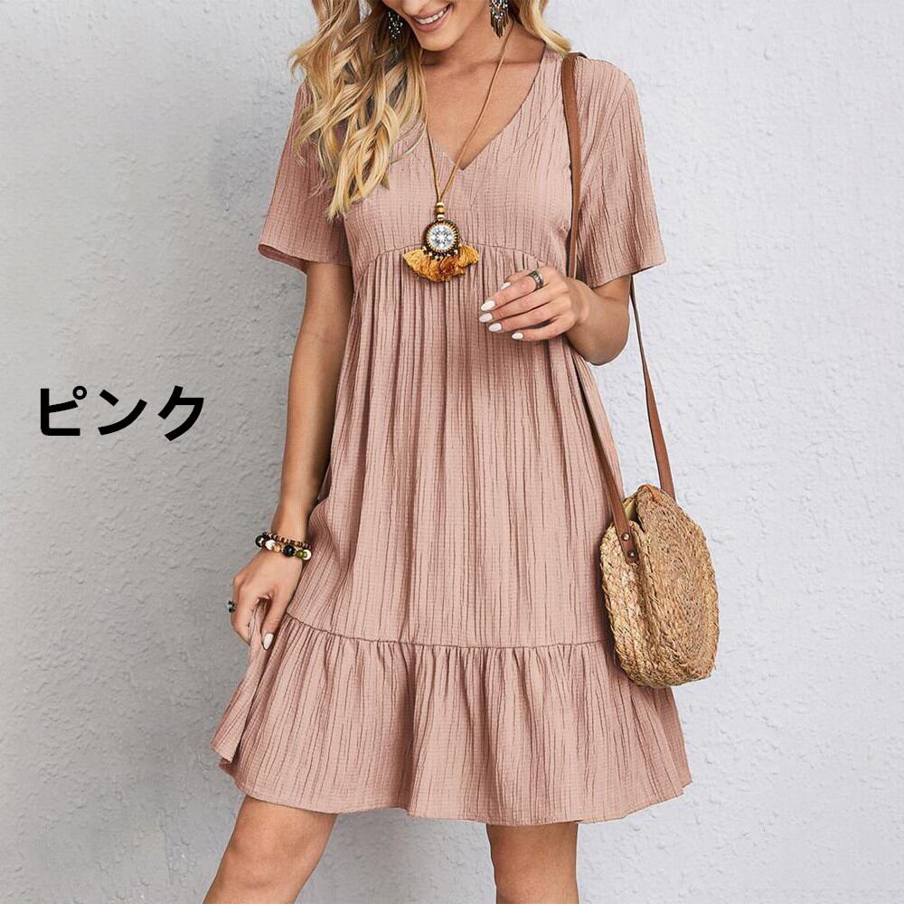 全7色!チュニックワンピース ハワイアン Vネックワンピ ショート丈 半袖