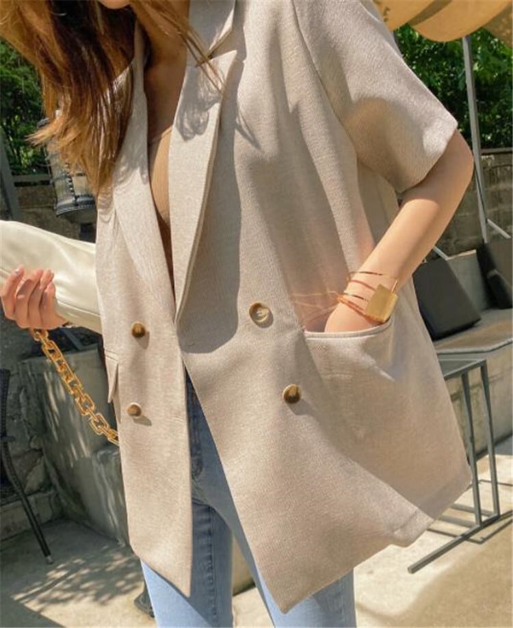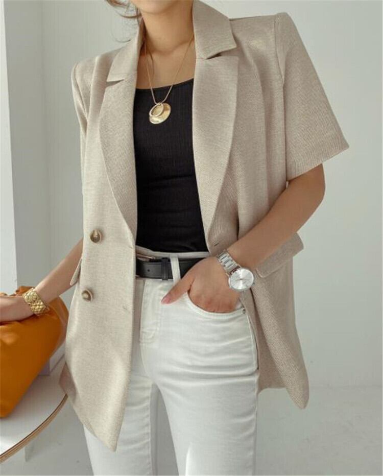 ベージュ ブラック サマージャケット オフィスカジュアル 透け感