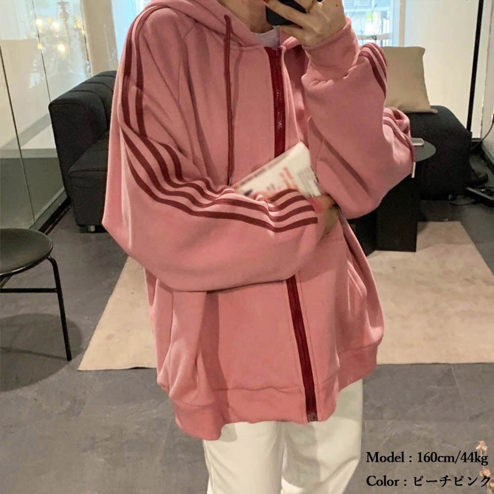 フード付き トレーナー長袖 オシャレ カジュアル レディース 前開き 韓国風 体型カバートップス ストリート着やせ