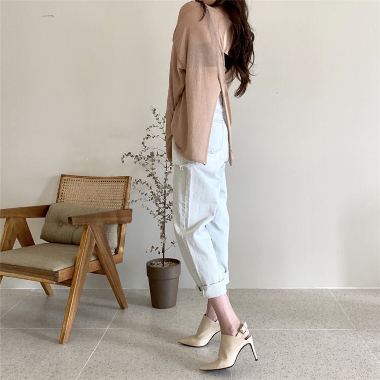 全2色 シアーニット 長袖ブラウス  ニット 薄い 透け感 ルーズ  背中あき スリッド セクシー