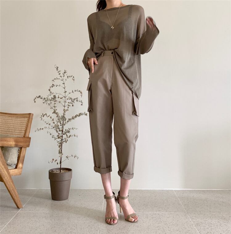 全2色 シアーニット 長袖ブラウス ニット 薄い 透け感 ルーズ 背中あき スリッド セクシー